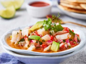 Delight in our Fish Ceviche, a flavorful dish showcasing fresh fish marinated in tangy lime juice and mixed with crisp onions, cilantro, and tomatoes. This chilled treat is refreshing, light, and perfect as an appetizer or a satisfying meal.